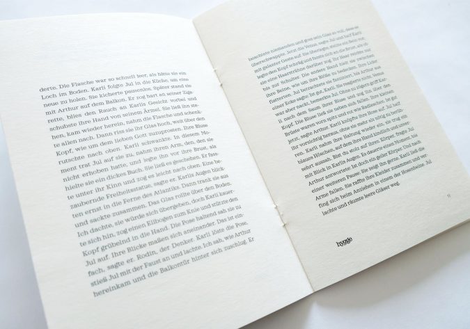 Design und Illustration für das in jedem Hygge Magazin beigefügten Büchlein. Diesmal Auszüge aus dem Debüt Roman einer Schriftstellerin.
